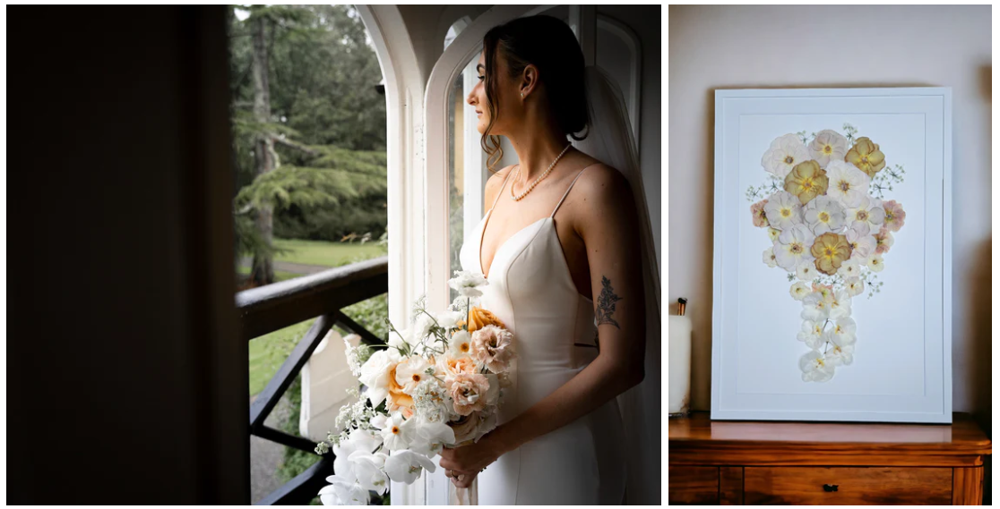 Wish you could have preserved your special flowers? Our recreation service allows you to replicate your special flowers as a bespoke piece of pressed or 3D flower art. Just send through a photo of your special bouquet or flowers, and what size frame you'd like to hello@siogbotanicals.ie