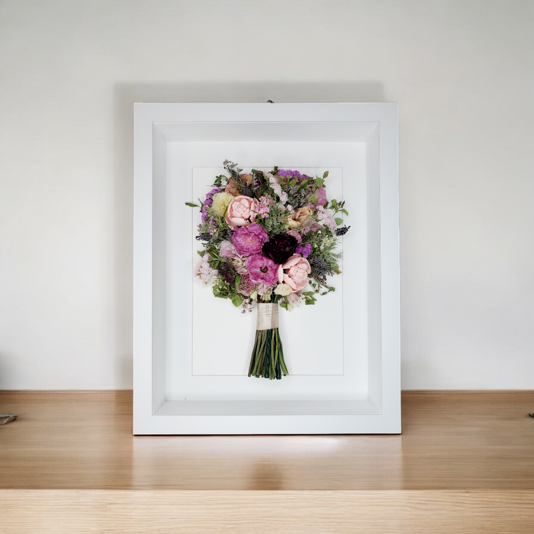 Signature Wedding Bouquet Preservation in 3D Shadow Box (16"x 21" / 40cm x 50cm)
